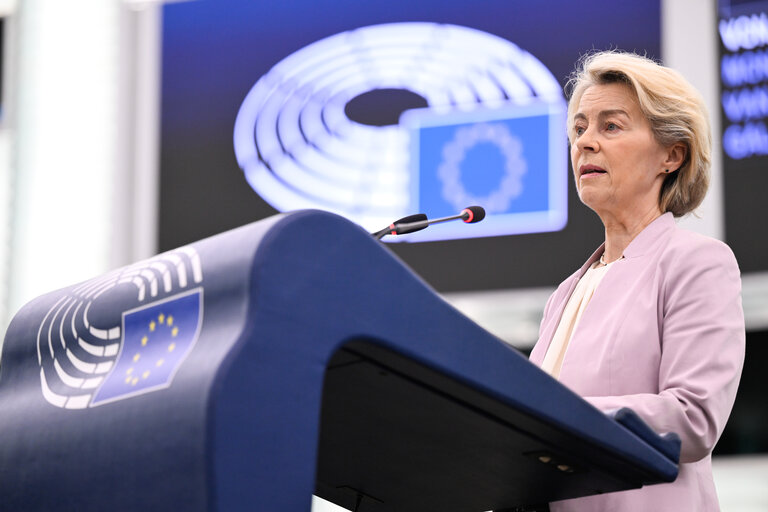 Președinta Comisiei Europene, Ursula von der Leyen, susține miercuri în plenul PE de la Strasbourg discursul anual privind Starea Uniunii.